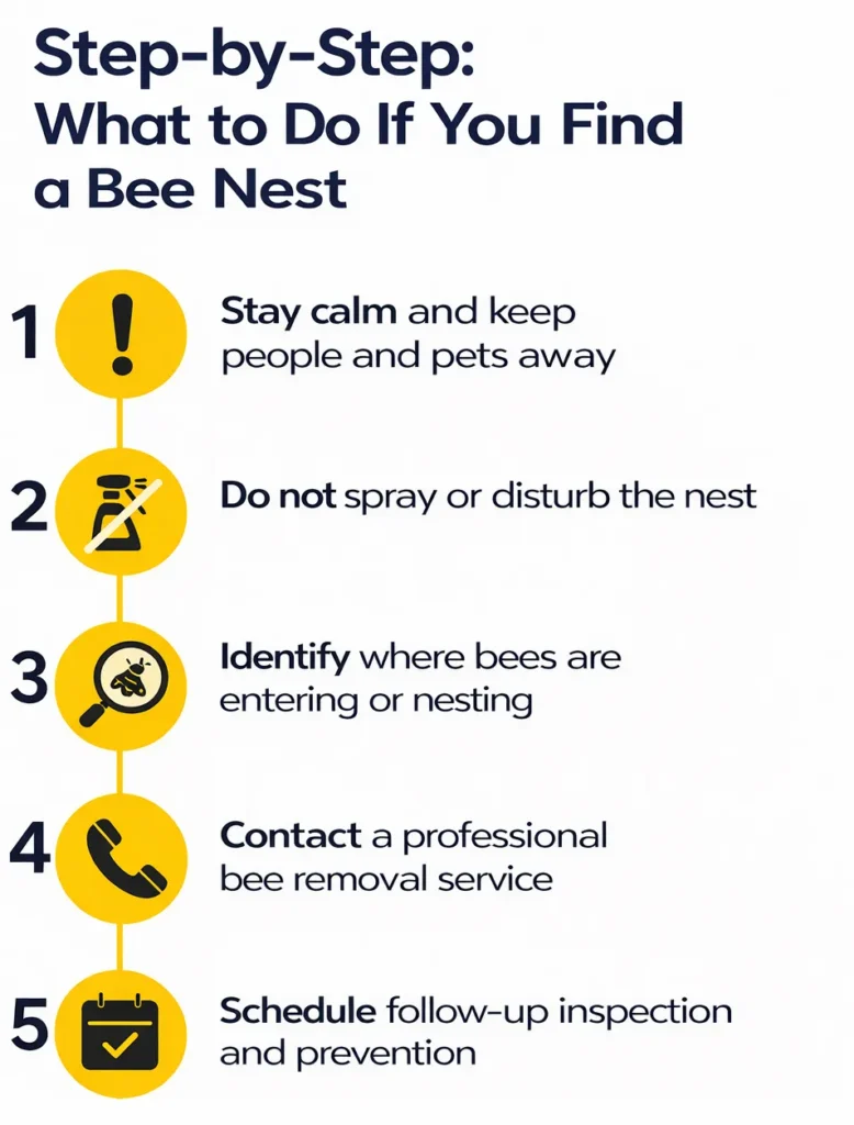 Where possible, we relocate bees safely to protect pollinators and maintain environmental balance.